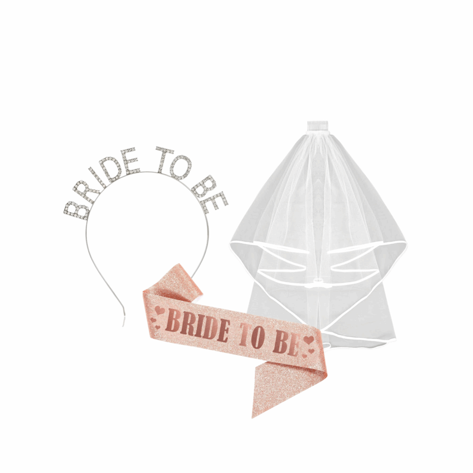 Serre-tête Bride to be + Voile EVJF + écharpe Bride to be glitter
